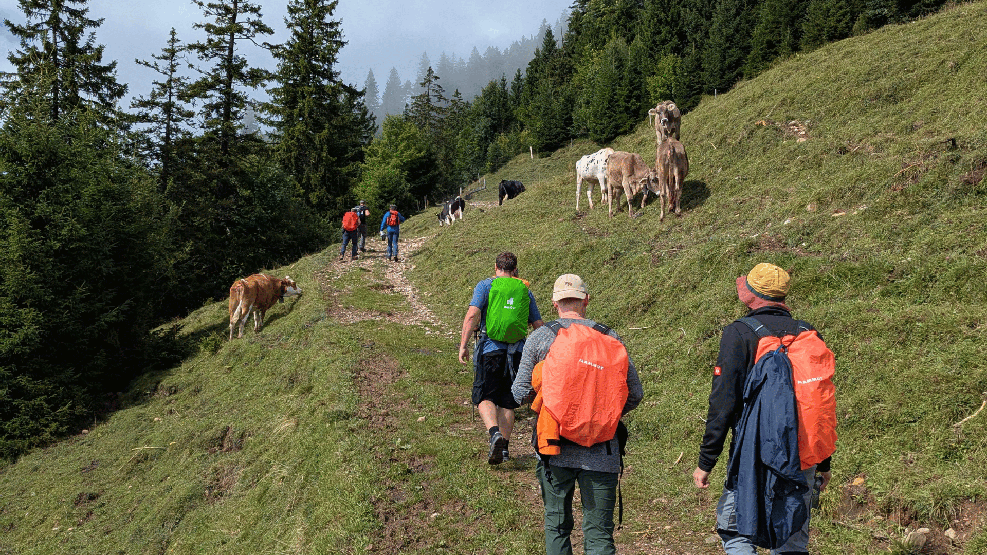 - Die mittelgrosse Wanderung: eine abwechslungsreiche Tour mit 950 Höhenmetern und etwa 4 Stunden Gehzeit, die bei einem gemeinsamen Mittagessen in Rigi Kaltbad endete und danach weiter Richtung Tal führte.